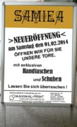 Lichtwerbung in allen Größen, Kundenstopper, Gratisplakat zur Geschäftsneueröffnung, Bonuskarten.